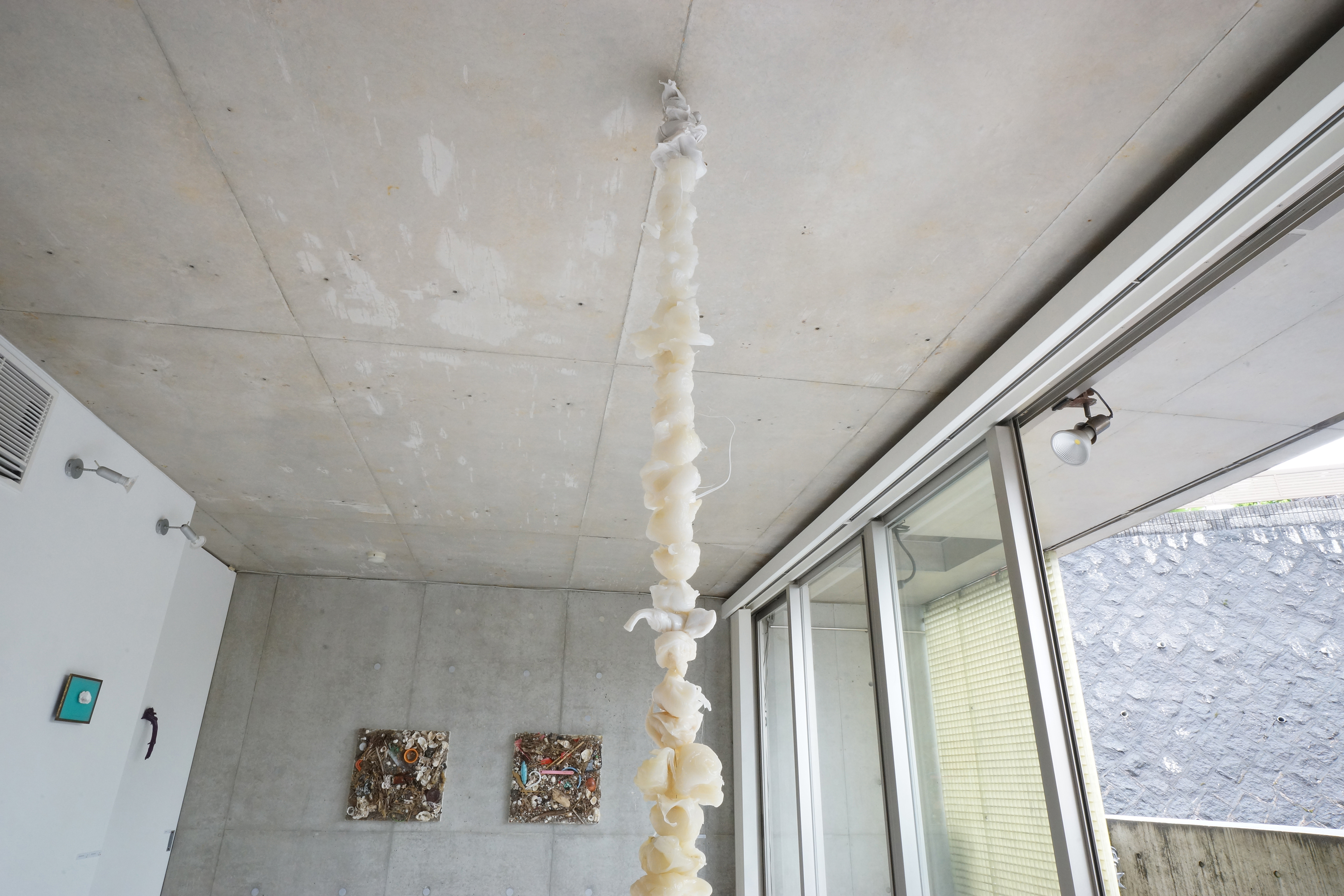 日々の海岸散歩で、気になる石や貝殻を拾っている。そのすぐ近くには動物の骨があり、また違う日にはネコの死骸があり、魚が何匹も打ち上げられていたりもした。あらゆるものがそこでは死んでいる。そうか、今拾ったばかりのこの貝殻も石も砂つぶも、すべて亡骸なのだと思う。 それらはゴミと絡まり、どこからが自然物でどこまでが人工物なのか判別できないことも多い。紐だと思うと海藻だったり、石だと思うとスチロールだったりというように。拾って帰ることもあれば、何となく見て見ぬふりをして帰ることもある。そうして昨日そこにあったものは、次の日には、また波にさらわれて海へと戻っていく。自然と人工、生と死が絡まった海の、地球の分泌物として。