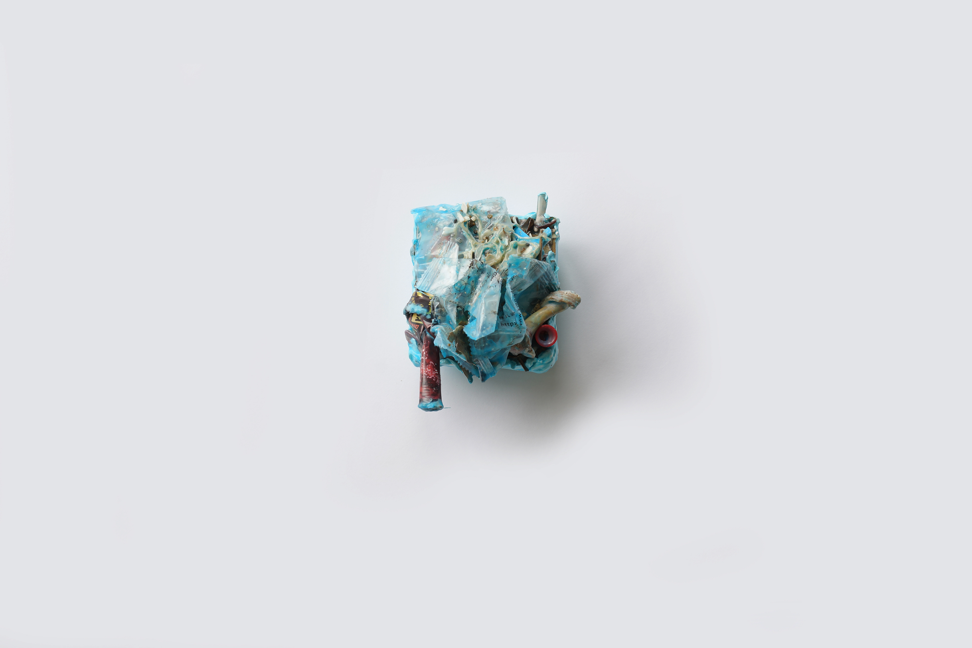 「10×10センチの足元 -light blue-」 mixed media / 2023