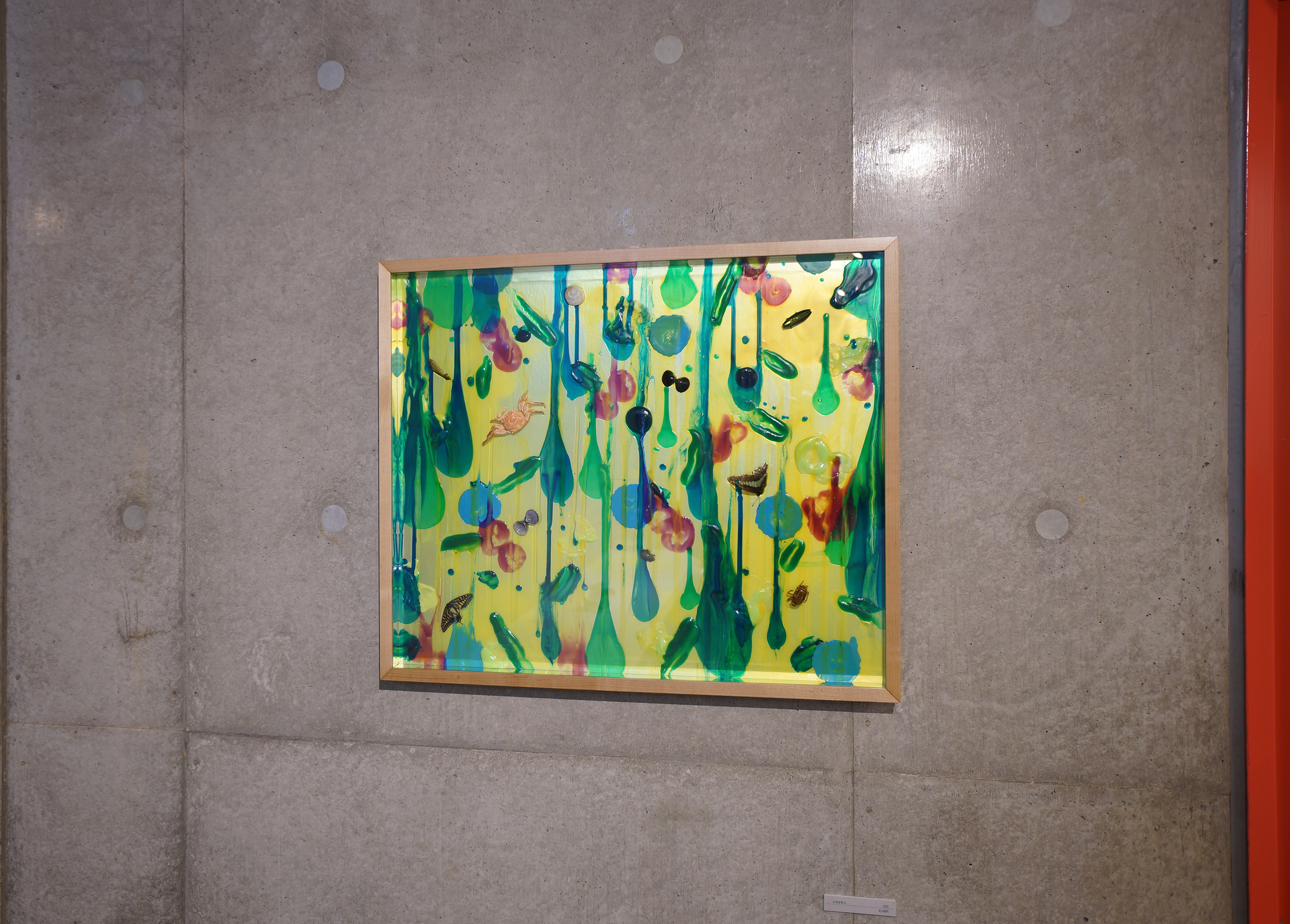 漢字で虫偏のつく生き物の死骸・アクリル絵の具・メディウム・ミラーシート・額 / 2025