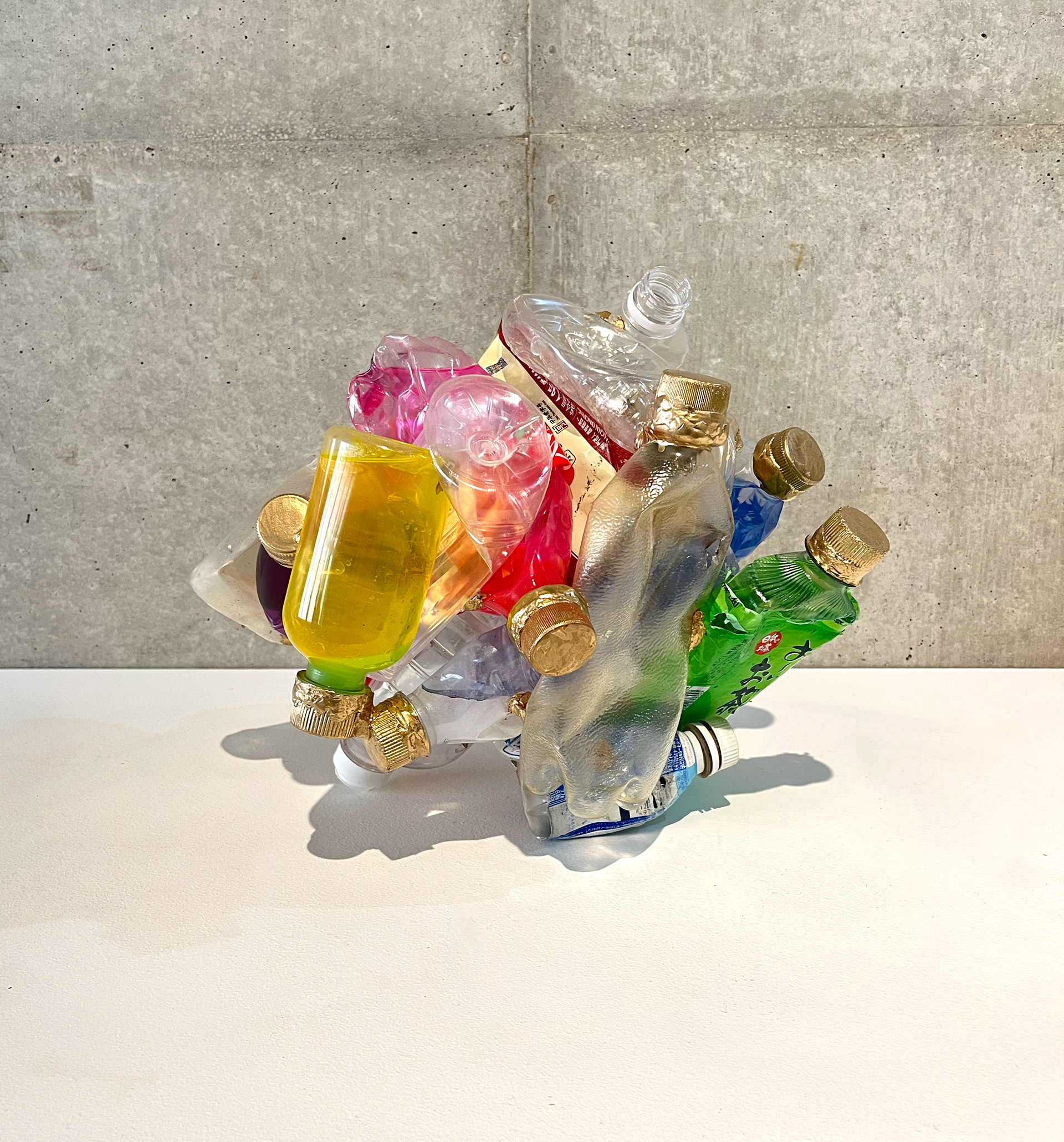 海岸で拾ったペットボトル・スプレー着色・鉄芯など / 2025